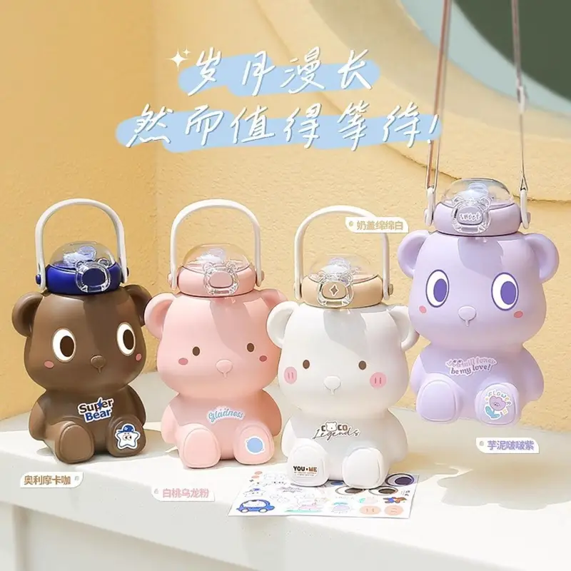 Bear Shape Kids Sipper with Straw & Strap | Double wall Insulations | 450 ML |Box Packing