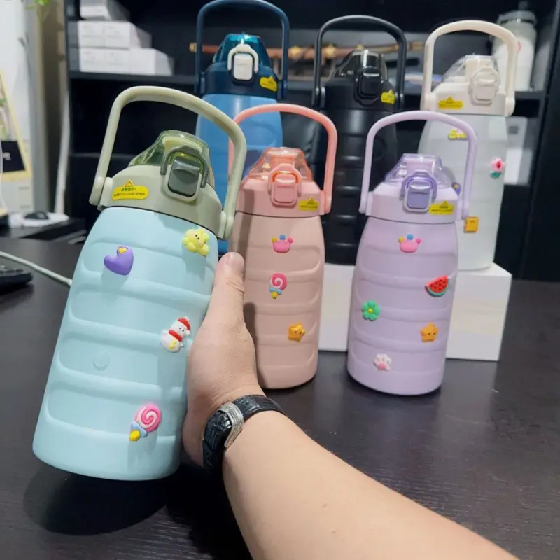 1200 ML Insulated Tumbler with Handle & Silicone Stickers | Double wall | Airtight & leak-Proof | Push Lock Button | Assorted Color | Box Packing