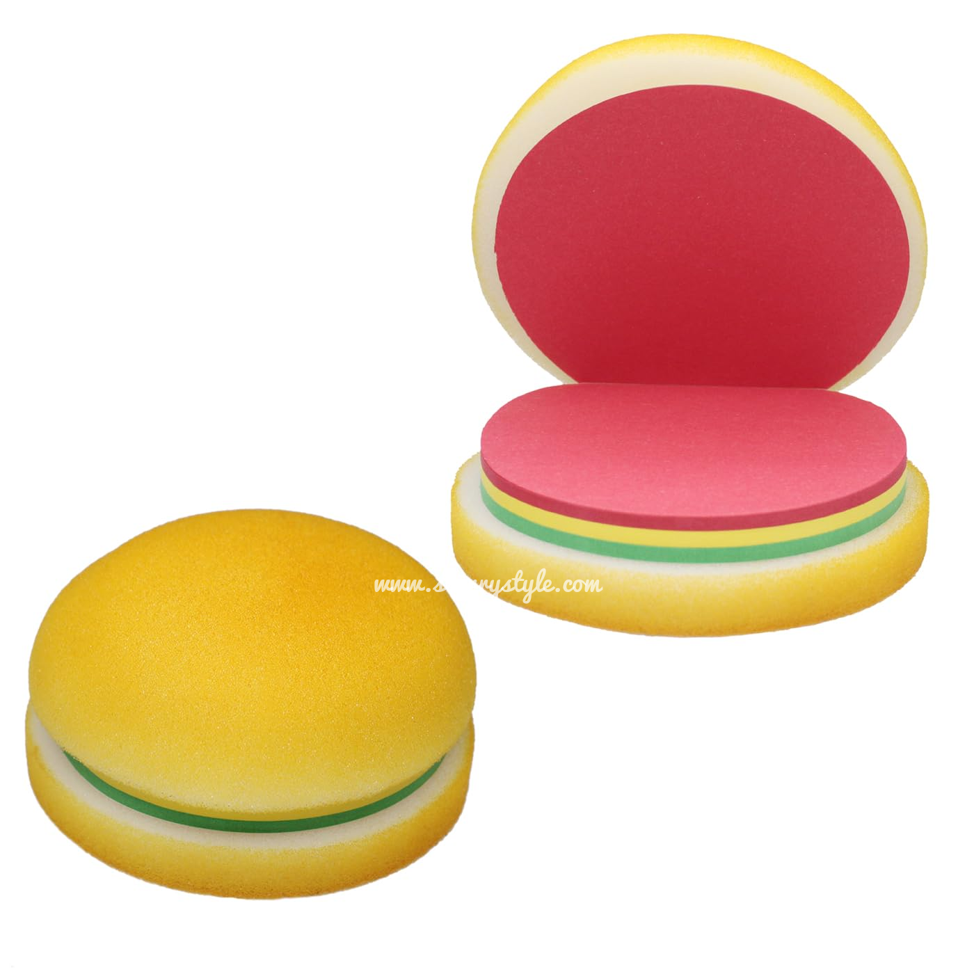 Design: The sticky notes are encased in a soft, rounded cover that realistically mimics the look and texture of a golden-brown hamburger bun.