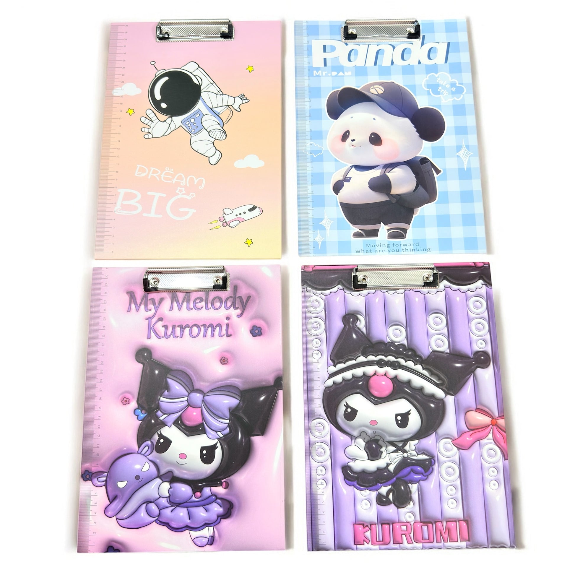 This image shows four decorative clipboards featuring colorful, kid-friendly illustrations.