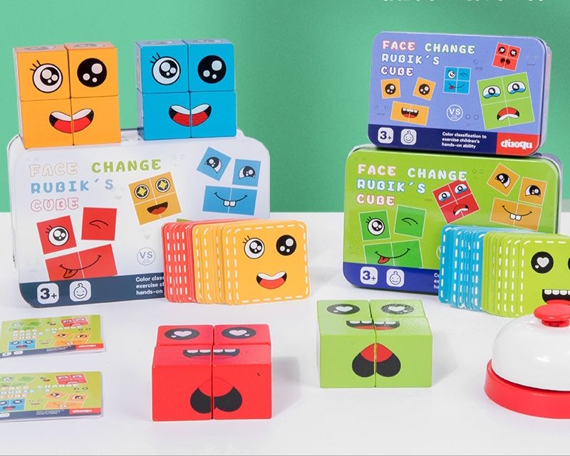 This image showcases the Face Change Rubik's Cube game, a fast-paced educational puzzle designed to build children's hands-on abilities and color recognition.