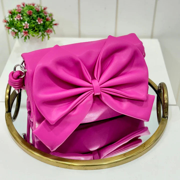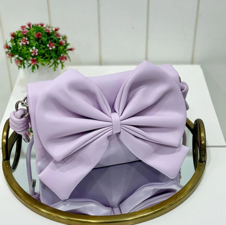 Bow detail: The bow is the decorative element – could be oversized and a focal point, or a subtle accent. For example: “Sculpted Knotted Bow… Round Bow Sling Bag”