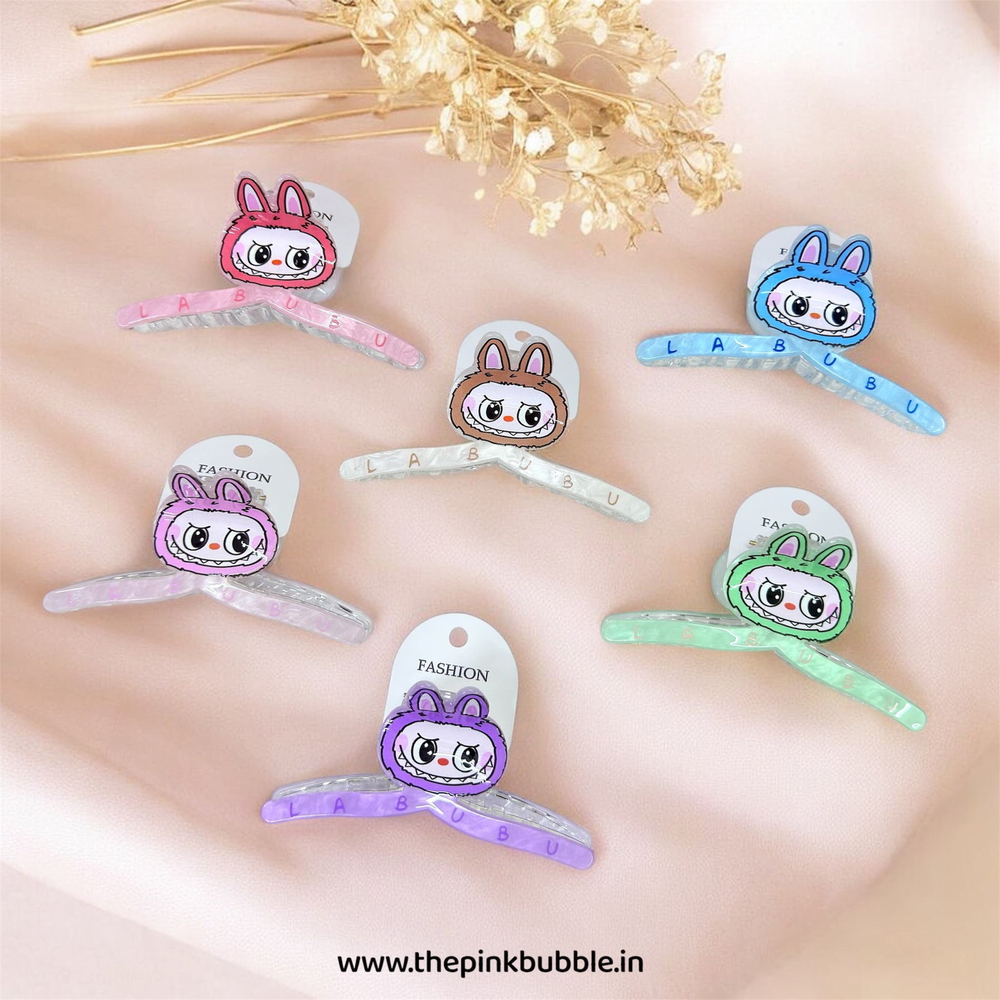 Custom Branding: The arms of the clips are uniquely detailed with "LABUBU" lettering for an extra trendy touch.