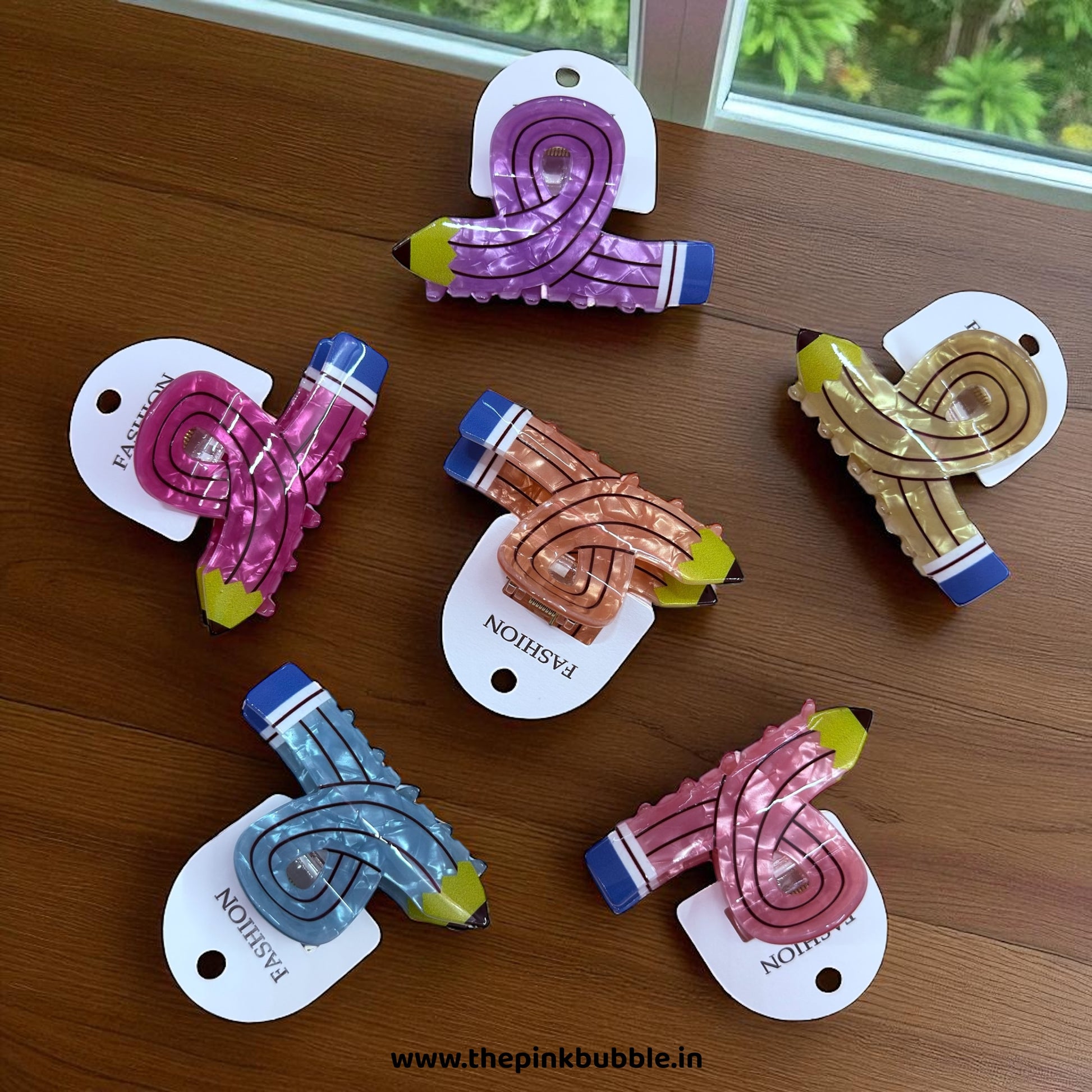 This image features a creative collection of pencil-shaped hair claws, perfect for students, teachers, or anyone who enjoys quirky, academic-themed accessories.