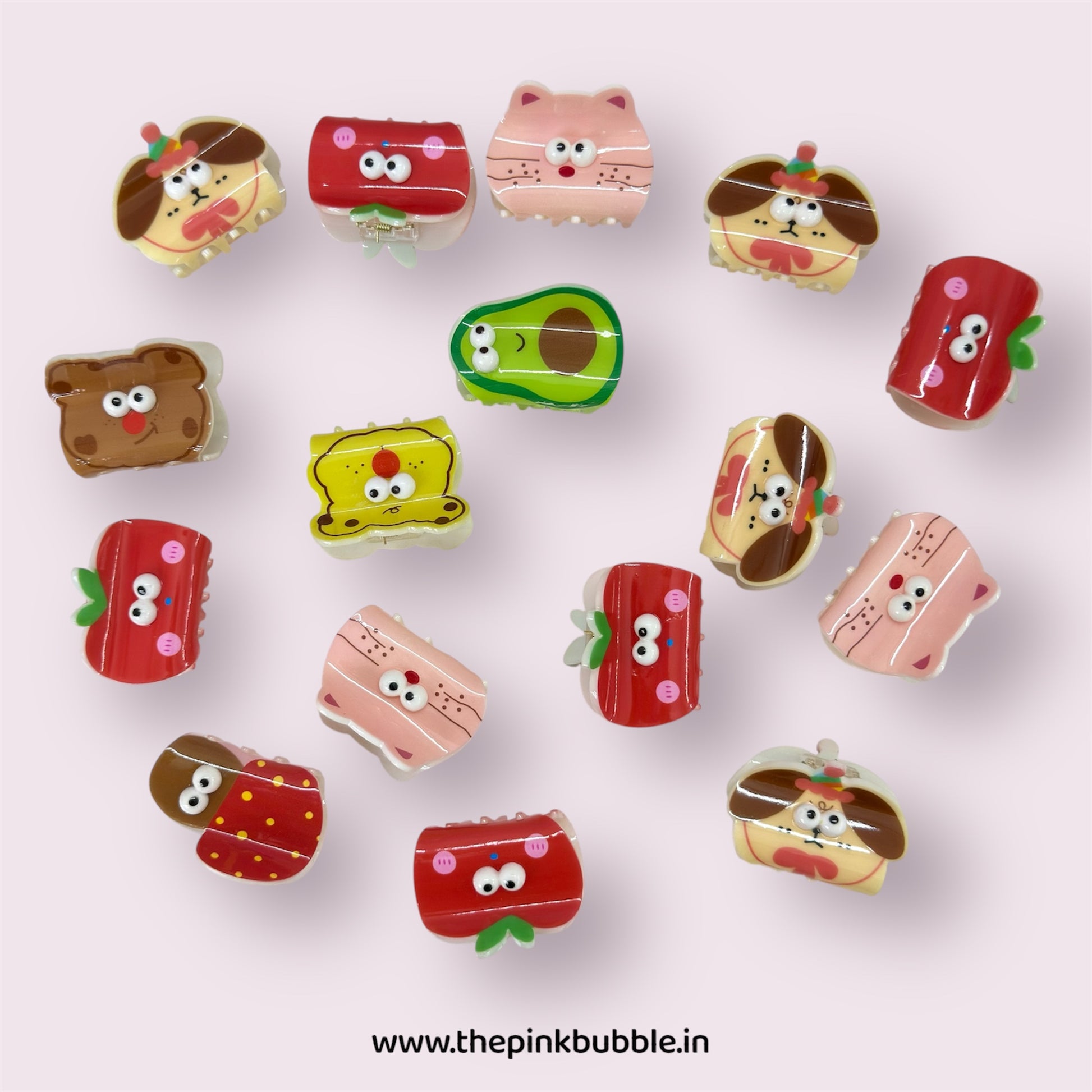 Add a quirky and fun touch to your everyday look with these Googly Eye Character Mini Claws. These vibrant, glossy clips feature a variety of adorable food and animal characters, each brought to life with expressive 3D googly eyes.