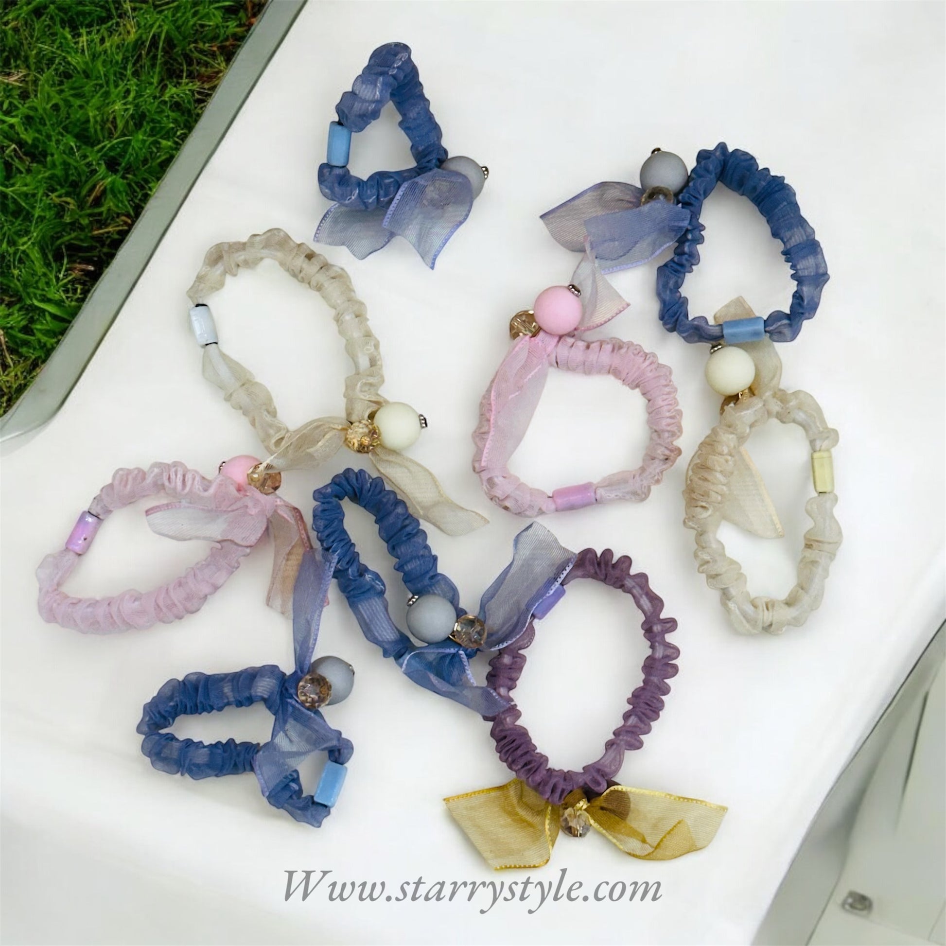 Add a touch of delicate charm to your hair collection with these Chiffon Bow Scrunchie Ties. These elegant accessories combine soft, textured fabric with whimsical accents, making them a perfect blend of style and function.