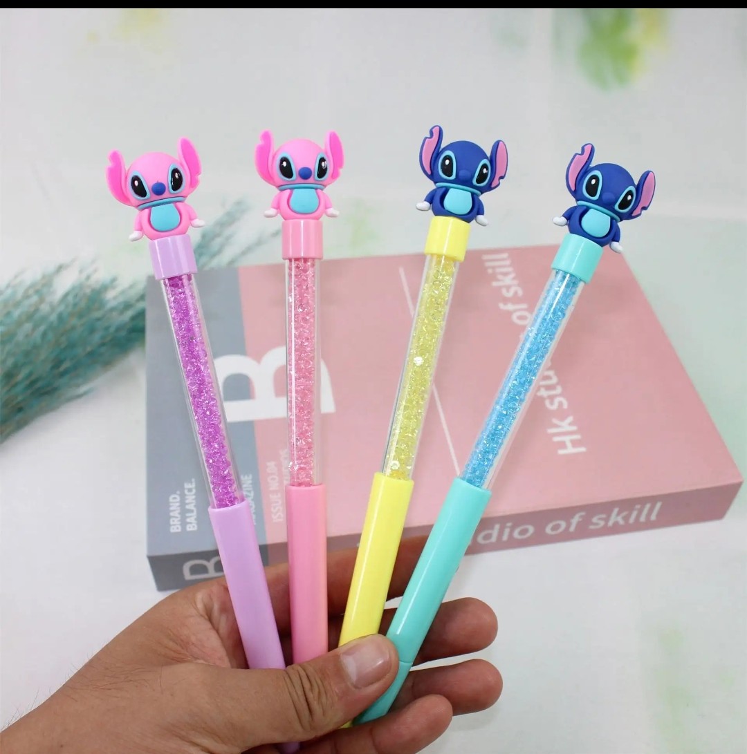 Barrel Style: The clear pen barrels are filled with shimmering, color-coordinated crystals that match the character's signature color.