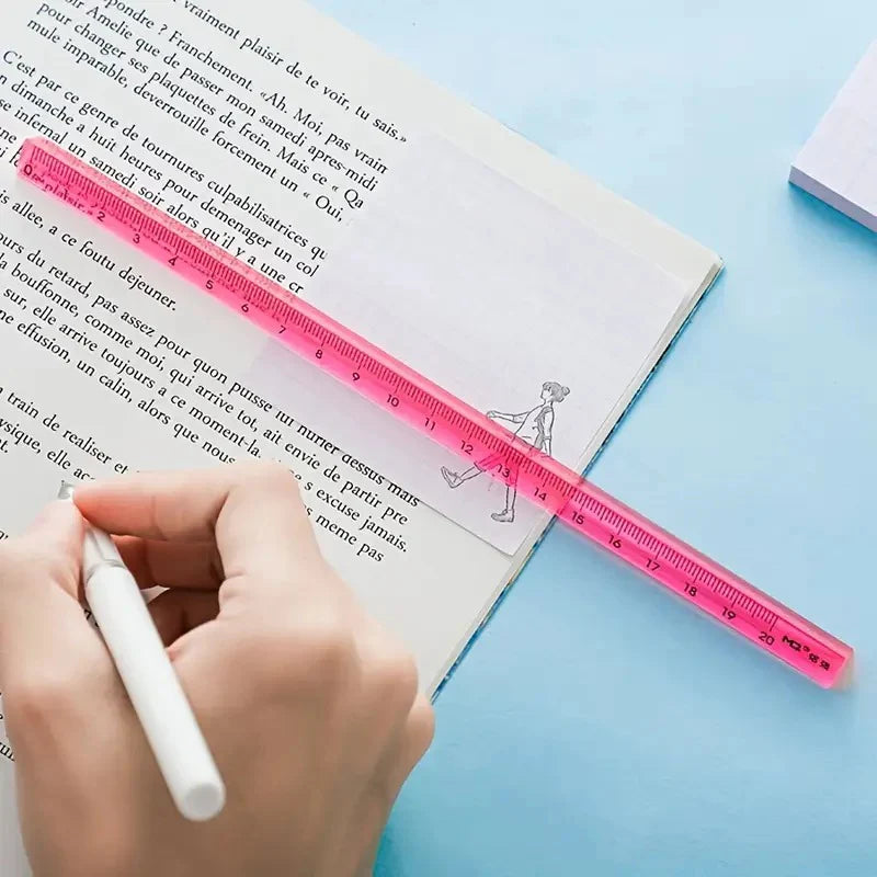 This image features a vibrant set of 20cm "Crystal" rulers, designed with a sleek, triangular prism shape. Each ruler transitions from a clear, transparent top to a rich, saturated color at the base, creating a beautiful gradient effect.