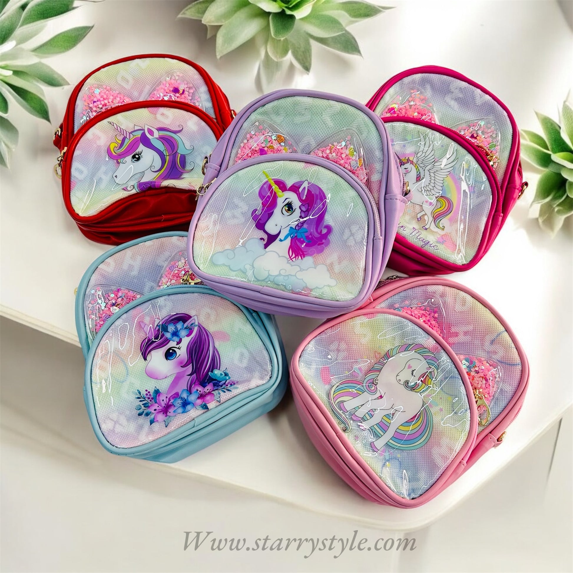 This collection of mini backpacks features a magical unicorn theme, perfect for young fashion enthusiasts. Each bag is designed with a mix of pastel colors, whimsical illustrations, and sparkling accents.