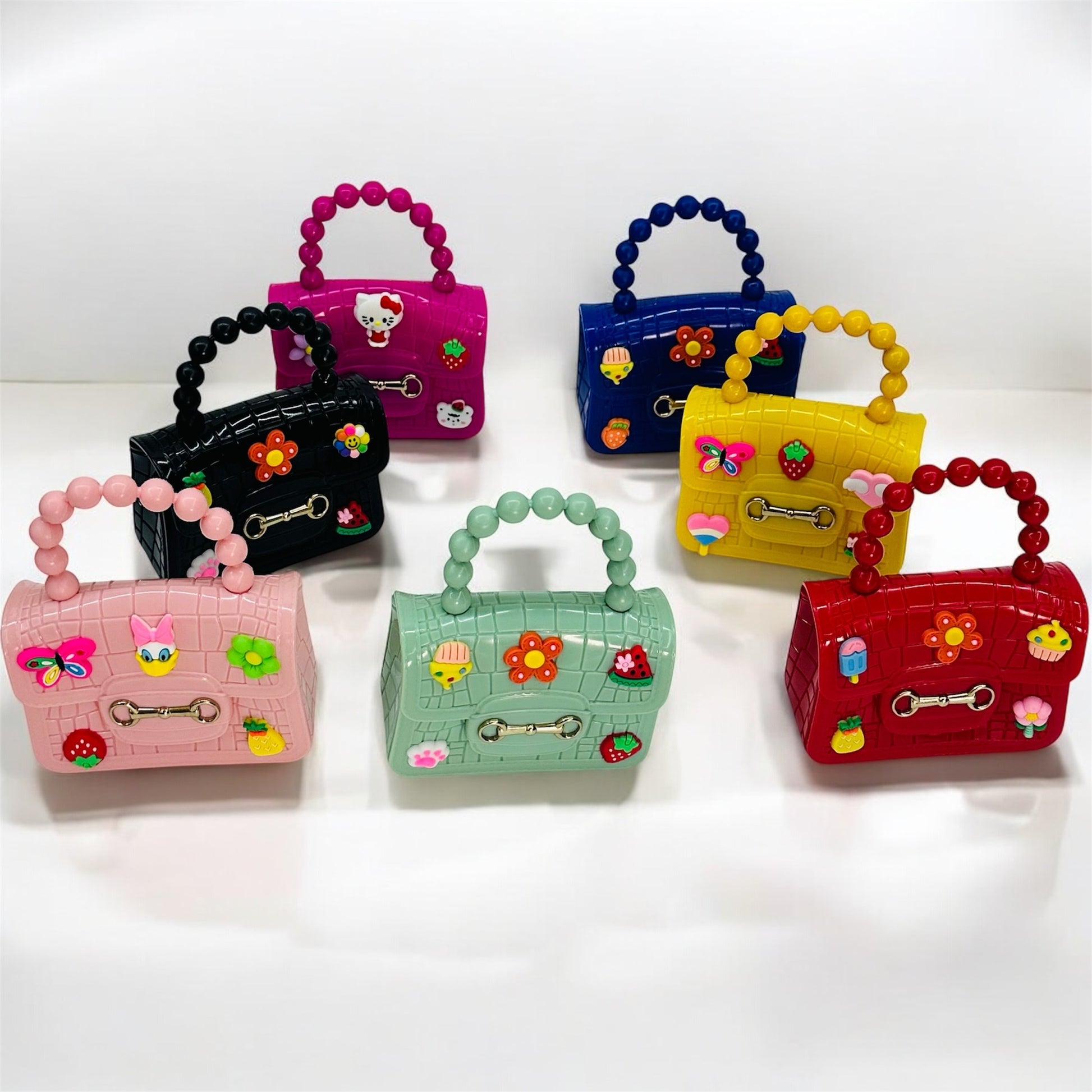 This collection of mini jelly handbags brings a playful, croc-embossed texture to a vibrant color palette. Designed with a whimsical "kawaii" aesthetic, these bags are perfect for adding a pop of color and personality to any outfit.